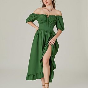 Vintage-kokoelma Juhla-asu Naamiaisasu Yhtenäinen väri Nelikulmainen kaula-aukko Naamiaispuku Naisten Kelttiläinen Fantasia Halloween Karnevaali Rento / arki Juhla / cocktail Aikuisten Leninki