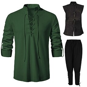 Vintage Keskiaika Renessanssi Housut Asut Vyötärövyö Merirosvo Ranger Yhtenäinen väri Naamiaispuku Miesten Viikinki Fantasia Naamiaiset Suoritus Naamiaiset LARP Aikuisten Pusero Housut Vyö