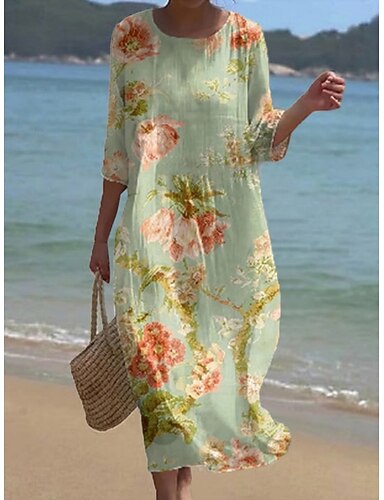 Naisten Maksimekko A linjainen mekko Vapaa-aika Päivittäin Deitti Bile Loose Fit Kukka Kuvitettu 3/4 hiha Tiukka pyöreä kaula-aukko Sininen Rubiini Purppura Apila Kesä Kevät