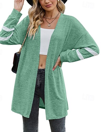 Naisten Neulos Neule Muoti Katutyyli Päivittäin Väripalikka Joustin Avoin etuosa Kudottu Pitkähihainen Pitkät topit Neuloa Pyhäpäivä Bile Viikonloppu Musta Punastuvan vaaleanpunainen Syksy Talvi