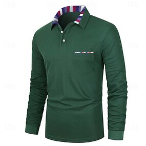 Miesten Golfpaita golf poolo Työ Kausaliteetti Kauluskäänne Pitkähihainen Perus Moderni Väripalikka Tilkkutäkki nappi 봄 & Syksy Normaali Viini Musta Armeijan vihreä Kuninkaallinen sininen Tumman
