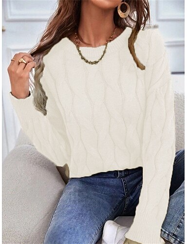 naisten villapaita villapaita neulepusero pyöreä kaula neulottu ontto pyöreä kaula neulottu olkapää kevät syksy kotiin päivittäinen loma päivittäin tyylikäs pehmeä pitkähihainen puhdas väri valkoinen