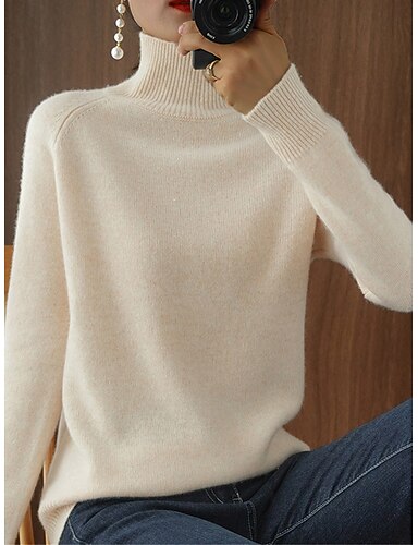 Naisten Neulos Neulepusero Vapaa-aika Pehmeä Puhdas väri Joustin Stand-kaula-aukko Kudottu Pitkähihainen Tavalliset topit Neuloa ulko- Päivittäin Viikonloppu Kameli Beesi Syksy Talvi
