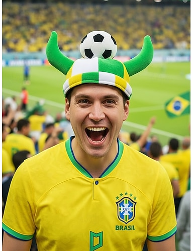 Miesten jalkapallon sarvihattu, polyesteristä valmistettu uutuusfanilakki, jalkapalloteemainen pukupäähine jalkapallo-otteluihin, joukkueen tukeen, stadiontapahtumiin ja pelipäivän vaatteisiin