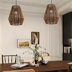 boheemit riippuvalaisimet keittiösaarekkeeseen, boheemi rottinki, käsin kudottu, luonnonvärinen meriheinäkudosvalaistus, riippuvalaisin ravintoloihin, olohuoneeseen
