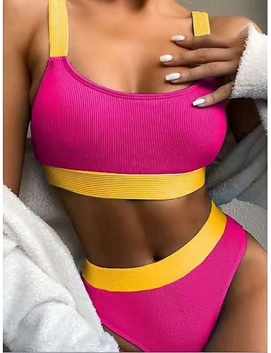 Naisten bikinit 2-osainen uimapuku värilohko kujeileva hoikka selkä paljaana lomaranta-asu värilohko V-kaula-aukko olkaimeton uimapuku