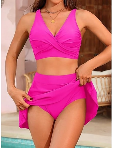 Naisten bikinit 2-osainen uimapuku kerrostettu seksikäs leikkaus hame hame hoikka selkä avoin loma rantaasu yksivärinen V-kaulaaukko hihaton
