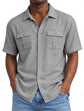 Miesten Paita Pellava paita Rento paita Puuvillainen paita Tavallinen Loma Katu Musta Valkoinen Punastuvan vaaleanpunainen Sininen Lyhythihainen Sänkyjen avaus Kesä Vaatetus Painike alas