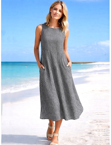 Naisten Midimekko A linjainen mekko Loma Vapaa-aika ulko- Bile Loose Fit Raita Hihaton Pyöreäkauluksinen Sininen Apila Harmaa Kesä Kevät