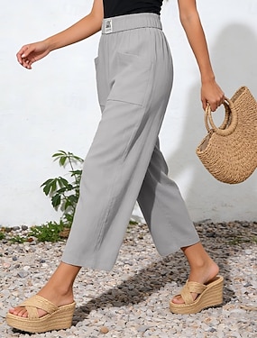 Naisten Pellavahousut Housut Rennot housut Kesähousut Loma Klassinen Rento arki Nilkkapituinen Keskivyötärö Tavallinen Tasku Roikkuva Mukavuus Pehmeä Hengittävä Joustamaton Katuvaatteet Hiekkaranta