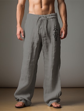 Miesten Kuvitettu Kirjain Pellavahousut Housut Keskivyötärö Vapaa-aika Arki-asut Loma Bile Kevät Syksy Musta Valkoinen Apila