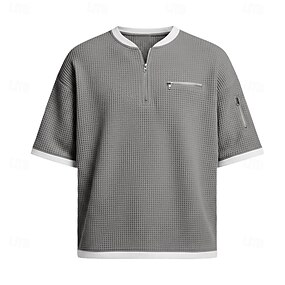 Miesten Zip Polo Textured Kausaliteetti Pyhäpäivä Kauluskäänne Neljänneksen postinumero Lyhythihainen Muoti Perus Tavallinen Pintakäsitelty Neljänneksen postinumero Lämmin Kesä Kevät Normaali Vaalean