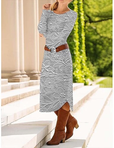 Naisten Midimekko Väljä mekko Kotelomekko Vapaa-aika Päivittäin Normaali Kukka Kuvitettu Paisley-kuvio Pitkähihainen Tiukka pyöreä kaula-aukko Punastuvan vaaleanpunainen Purppura Aprikoosi Harmaa