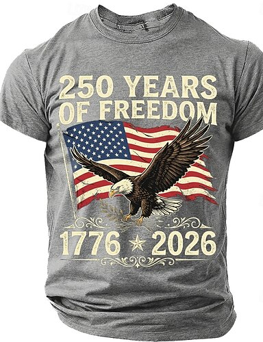 4. heinäkuuta 2026 250. Miesten Yhtenäinen väri Yhdysvaltain Yhdysvaltain lippu T-paita Lyhythihainen T-paita 3D-tulostus Tiukka pyöreä kaula-aukko Paita Vintage retro Patriotismi Päivittäin