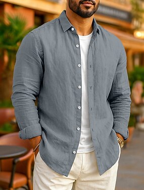 Miesten Paita Pellava paita Kesä paita Ranta-asut Tavallinen Loma Kausaliteetti Musta Valkoinen Apila Harmaa Pitkähihainen Kauluskäänne Kesä Kevät Vaatetus
