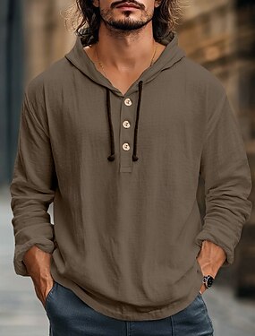 Miesten Paita Pellava paita Ranta-asut Button Up paita Hupullinen paita Tavallinen Loma Kausaliteetti Valkoinen Sininen Armeijan vihreä Harmaa Pitkähihainen Hupullinen Kesä Kevät Vaatetus Napit