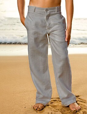 Miesten Pellavahousut Housut Kesähousut Rantahousut Tasku Suora jalka Tavallinen Mukavuus Hengittävä Kausaliteetti Päivittäin Pyhäpäivä Muoti Klassinen tyyli Valkoinen Khaki
