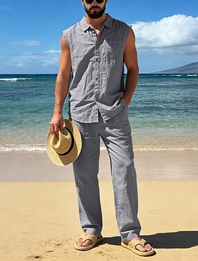 Mies Pellava paita 2 osainen Paidasetti Ja Pellavahousut Housut Rennot housut Aseta Tavallinen Päivittäin ulko- Loma Sänkyjen avaus Hihaton Kesä Muoti Vapaa-aika Mukava Vaatetus