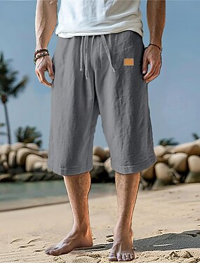 Miesten Shortsit Puuvillaiset pellavashortsit Kesähousut Rantahousut Tasku Kurenauha Joustava vyötärö Tavallinen Mukavuus Hengittävä Polven pituus Loma Pyhäpäivä Hiekkaranta Havaijilainen Boheemi