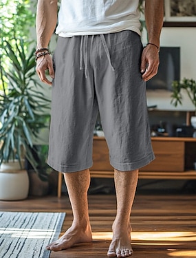 Miesten Caprihousut Shortsit Liinavaatteet Kesähousut Rantahousut Kurenauha Edessä tasku Suora jalka Tavallinen Mukavuus Hengittävä Vasikka-Length ulko- Loma Koti Loma Muoti Loose Fit Musta Valkoinen