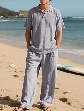 Miesten Pellava paita 2 osainen Popover paita Ja Pellavahousut Housut Rennot housut Aseta Tavallinen Päivittäin ulko- Hiekkaranta Sänkyjen avaus Lyhythihainen Kesä Kevät Muoti Vapaa-aika Mukava