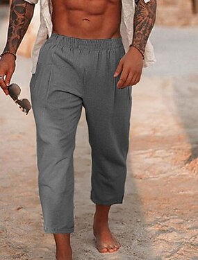 Miesten Pellavahousut Caprihousut Kesähousut Tasku Joustava vyötärö Tavallinen Mukavuus Hengittävä Vasikka-Length Päivittäin ulko- Hiekkaranta Muoti Klassinen tyyli Sininen חאקי כהה Mikrojoustava