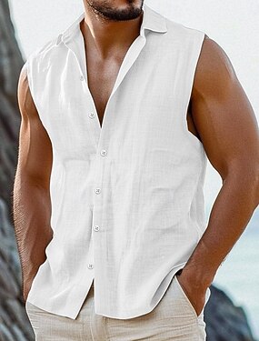 Miesten Paita pellava paita Kesä paita Ranta-asut Button Up paita Tavallinen Loma Curise Valkoinen Punastuvan vaaleanpunainen Vaalean sininen Hihaton Kaulus Kesä Kevät Vaatetus