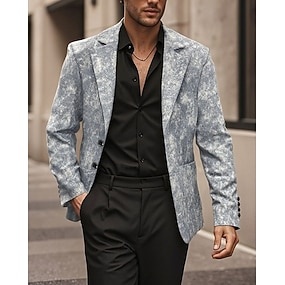 Miesten Bleiseri liiketoiminta Cocktailjuhla Hääjuhla Muoti Vapaa-aika Kevät Syksy Polyesteri Graafiset tulosteet Tasku Napit Mukava Yksirivinen Bleiseri Harmaa