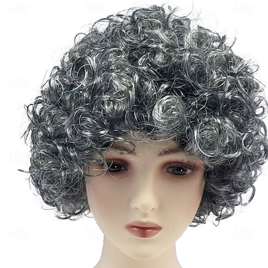 Synteettinen peruukki kihara otsatukalla koneellisesti valmistettu peruukki lyhyet harmaat synteettiset hiukset miesten harmaat Halloween-peruukit