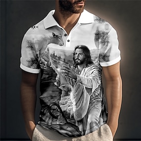 Miesten Jeesus kristillinen Poolopaidat Golfpaita Lyhythihainen Poolopaidat Kauluspaidat Vintage Vapaa-aika Lomavaatteet Festivaalivaatteet Juhla-asut Napit 3D-tulostus Keltainen Sininen Apila