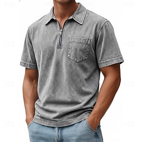 Miesten Zip Polo 100 % puuvillahappopesupaita Kausaliteetti Arki-asut Neljänneksen postinumero Lyhythihainen Muoti Perus Tavallinen Denimi Tasku Ahdistunut Kesä Kevät Kevät kesä Normaali Musta
