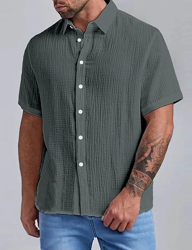 Miesten Paita Pellava paita Rento paita Button Up paita Puuvillainen paita Tavallinen Loma Katu Musta Valkoinen Khaki Armeijan vihreä Lyhythihainen Sänkyjen avaus Kesä Vaatetus Tasku