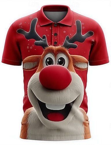 Christmas Miesten Hirvi Polo Lyhythihainen Poolopaidat Kauluskäänne Vapaa-aika Pyhäpäivä Arki-asut Festivaalin asu 3D-tulostus Napit Kesä Punainen 1 Punainen 3 Punainen 2