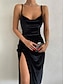 Naisten Pitkä mekko Maxi mekko Puuvillaiset pellavamekot Puuvillapellavamekko Slip Mekko Muoti Perus Moderni Päivittäin Hiekkaranta Viikonloppu Normaali Tavallinen Hihaton Spagettiolkaimet Musta