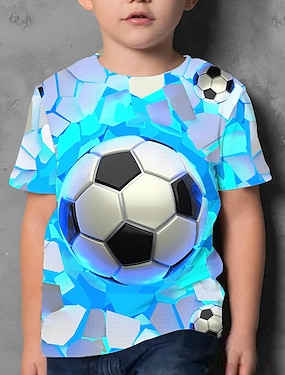 Poikien 3D Jalkapallo T-paita Paidat Lyhythihainen 3D-tulostus Kesä Kevät Aktiivinen Urheilu Muoti Lapset 3-12 vuotta Tiukka pyöreä kaula-aukko ulko- Kausaliteetti Päivittäin Normaali