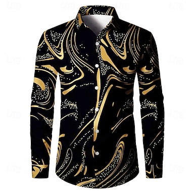 Miesten Väripalikka Geometrinen printti Paita Pitkähihainen Muoti Suunnittelija Vapaa-aika ulko- Loma Päivittäin Kevät kesä Kaulus 3D-tulostus Painike alas Musta Keltainen Purppura Apila