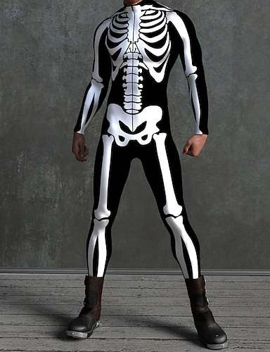 Kuviolliset Zentai-puvut Cosplay-Asut Kokopuku Tulostus Karnevaali puku Kokohaalari Miesten Naisten Seksikäs puku Halloween 3D Luuranko Puku varten Suoritus Juhla Naamiaiset Aikuisten