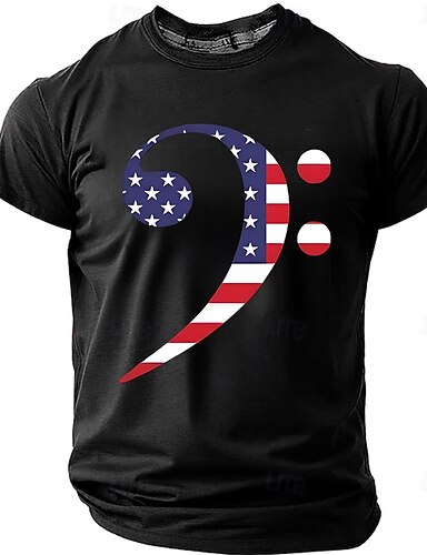 Amerikan 250-vuotisjuhla miesten bassoavain Amerikan lippu isänmaallinen musikaali tähdet ja raidat t-paita graafinen normaali istuvuus muusikko basisti lahja 4. heinäkuuta konsertti rento