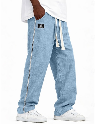 Miesten Pellavahousut Housut Kesähousut Roikkuvat housut Rantahousut Kurenauha Joustava vyötärö Suora jalka Yhtenäinen väri Mukava Hengittävä Täyspitkä Päivittäin Hiekkaranta Pyhäpäivä Loma Muoti