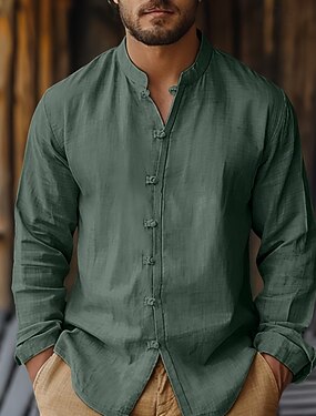 Miesten Paita Puuvillainen pellava paita Kiinalainen kauluspaita Mandarin kauluspaita Kesä paita Rantapaita Tavallinen Loma Havaijilainen Musta Khaki Pitkähihainen Kauluskäänne Kevät kesä Vaatetus