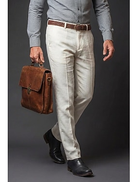 Miesten Puuvilla Pellava Puvunhousut Rennot housut Katuvaatteet liiketoiminta Tyylikäs Formaali tyyli Vapaa-aika Valkoinen Punastuvan vaaleanpunainen Beesi Yhtenäinen väri Räätälöity istuvuus Pitkä
