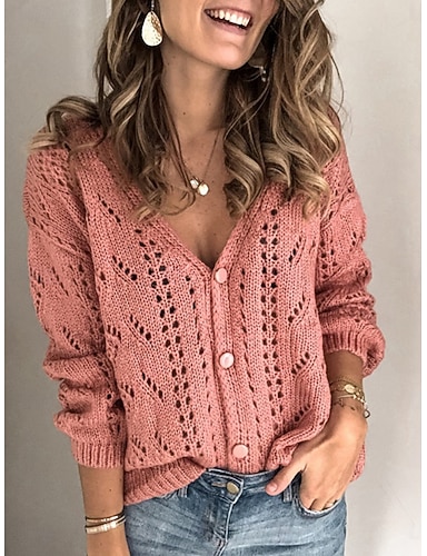 Naisten Neulos Vapaa-aika Pehmeä Puhdas väri Joustin V kaula-aukko Napit Kudottu Pitkähihainen Tavalliset topit Neuloa ulko- Päivittäin Viikonloppu Musta Punastuvan vaaleanpunainen Syksy Talvi