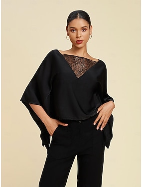 Naisten Kesän yläosat Yksivärinen / yksivärinen Rento / arki Viikonloppu Lepakkohiha Musta Pitsi Dolman-hihat Rento arki Venekaula-aukko Kesä