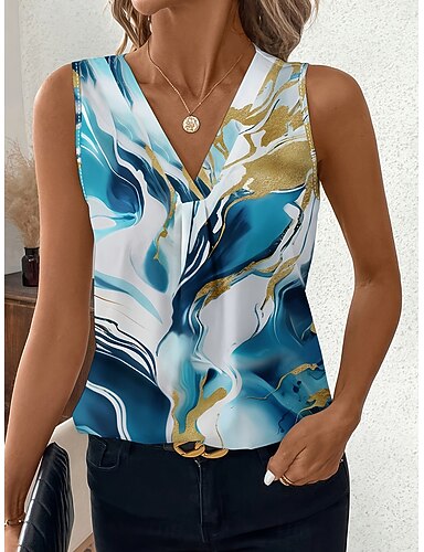Naisten Hihaton Kuvitettu Geometrinen Abstrakti Tyylikäs Vintage Klassinen Hihaton V kaula-aukko Tavalliset topit Päivittäin Sininen Keltainen Kesä Kevät