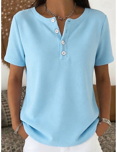 Naisten Pusero Rintapainikkeet Yhtenäinen väri Tyylikäs Perus Klassinen Lyhythihainen Tiukka pyöreä kaula-aukko Tavalliset topit Päivittäin Sininen Musta Valkoinen Rubiini Laivaston sininen Kesä Kevät