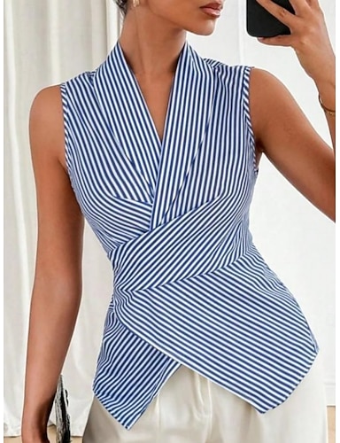Naisten T-paita Painettu Raidoitettu Muoti Tyylikäs Klassinen Hihaton V kaula-aukko Tavalliset topit Päivittäin Bile Viikonloppu Sininen Musta Kesä Kevät