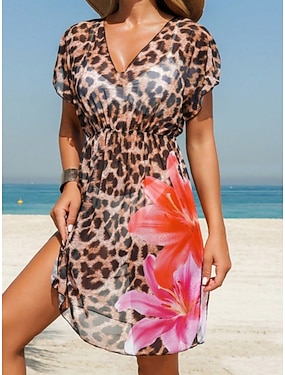 Naisten kokonaisuus uimapuku leopardimonokini mekko vatsanhallinta korkea vyötärö ohut avoin loma rantavaatteet kukkainen seeprakuosi U-kaula-aukko hihaton uimapuku