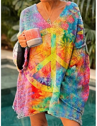 Naisten Neulos Vapaa-aika Pehmeä Kukka Kuvitettu Joustin V kaula-aukko Kudottu Painettu Pitkähihainen Pitkät topit Neuloa ulko- Päivittäin Viikonloppu Keltainen Viini Kevät Syksy