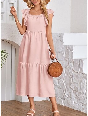 Naisten Maksimekko Rento mekko Kellomekko A linjainen mekko Tyylikäs Perus Vapaa-aika Loma Päivittäin Normaali Tavallinen Lyhythihainen Nelikulmainen kaula-aukko Punastuvan vaaleanpunainen Beesi Kes