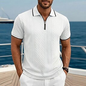 Miesten Textured Golfpaita Kausaliteetti Työ Kauluskäänne Neljänneksen postinumero Lyhythihainen Perus Moderni Väripalikka Vetoketju Tasku Kesä Kevät Kevät kesä Normaali Valkoinen Laivaston sininen